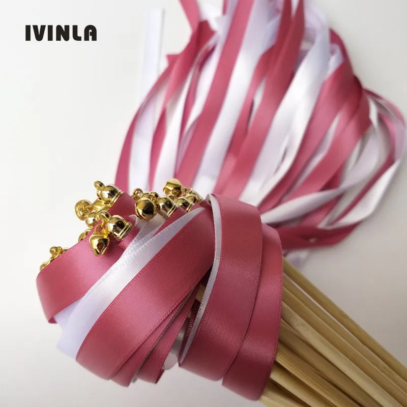 Celebrate your special day with the elegant 50PCS Coral and White Wedding Ribbon Wands. Designed with flowing satin ribbons and a charming gold bell, these wedding ribbon sticks create a joyful and colorful moment during wedding ceremonies, exits, and celebrations.