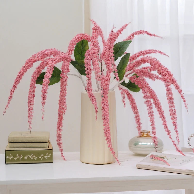 With a 36-inch long stem, this artificial cockscomb flower is ideal for vase arrangements, stage displays, and floral installations. The cascading flower design adds depth and dimension to decorative setups, making it perfect for modern and artistic decor themes.